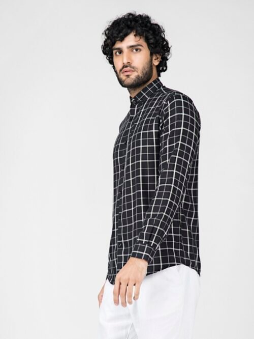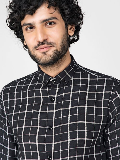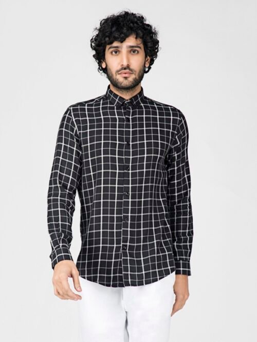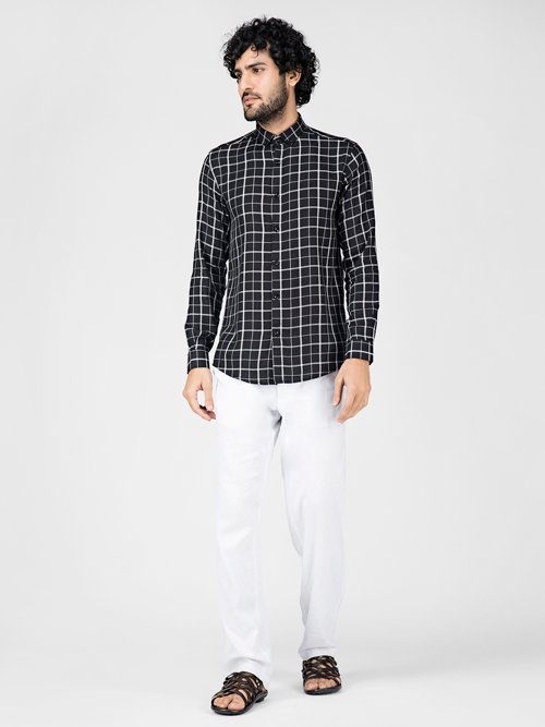 WHITE STRIPE FULL SLEEVES SHIRT WITH BUTTON DOWN COLLAR.