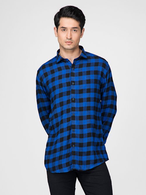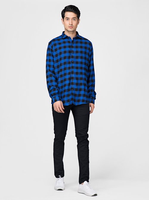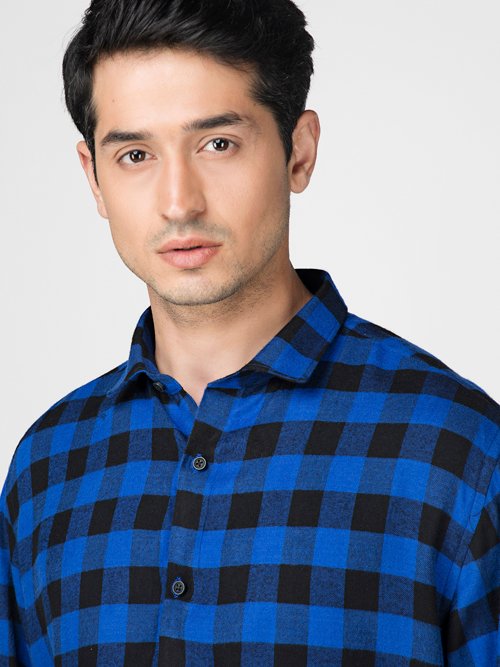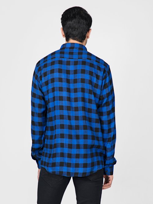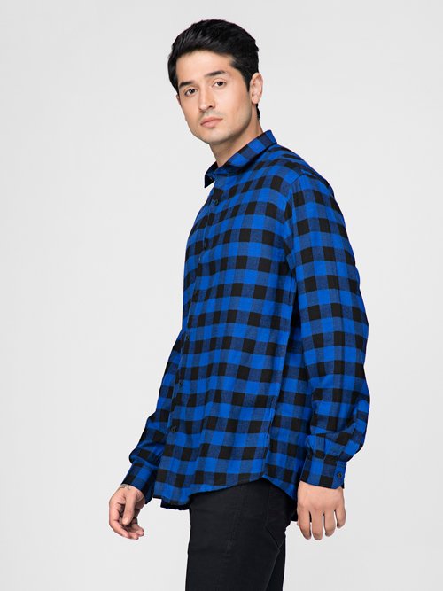 BLUE BLACK CHECKS casual shirt Has a button-down collar A full button placket An embroidered logo Long sleeves with roll-up button tabs A curved hemline