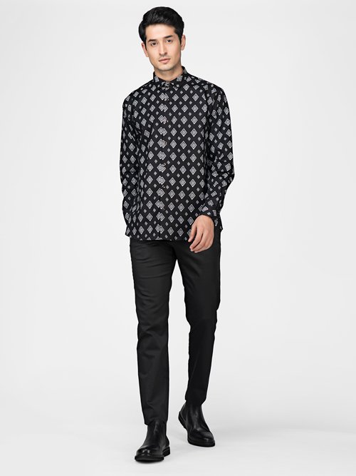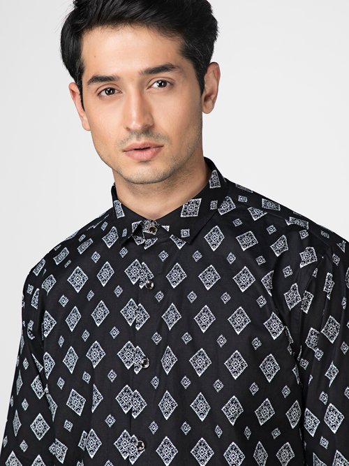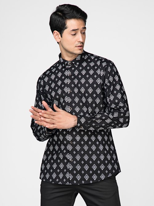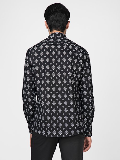 BLACK EYE PRINT CASUAL SHIRT WITH FULL SLEEVES,BACK CUT COLLAR.