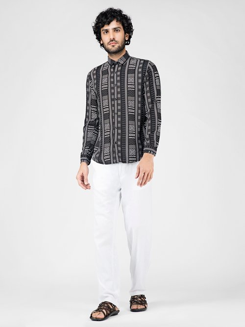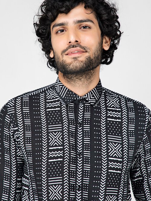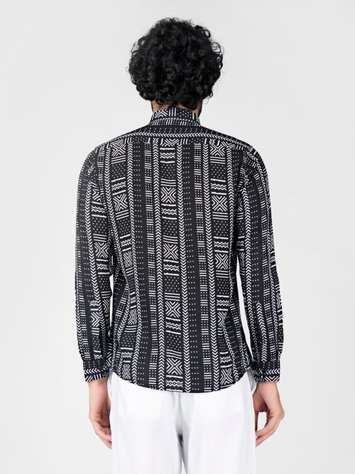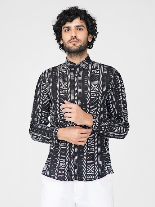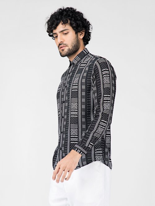 BLACK TRIBAL PRINT CASUAL SHIRT WITH FULL SLEEVES.