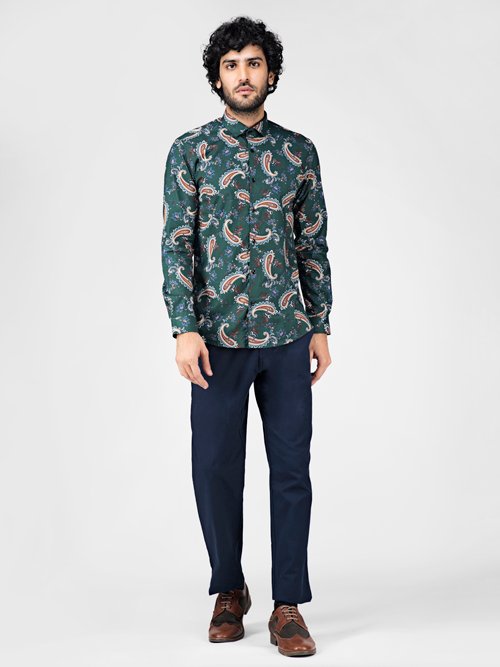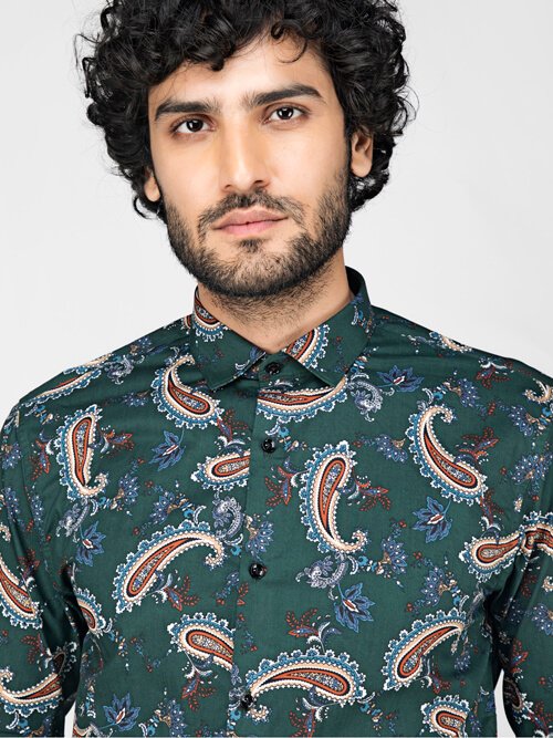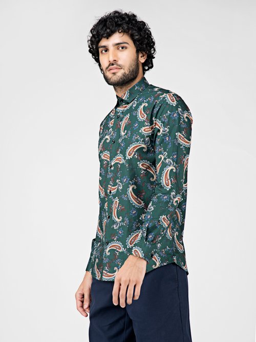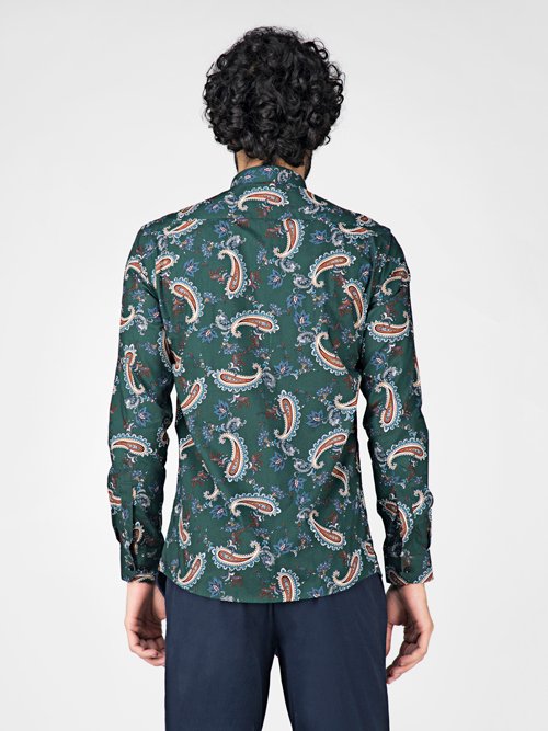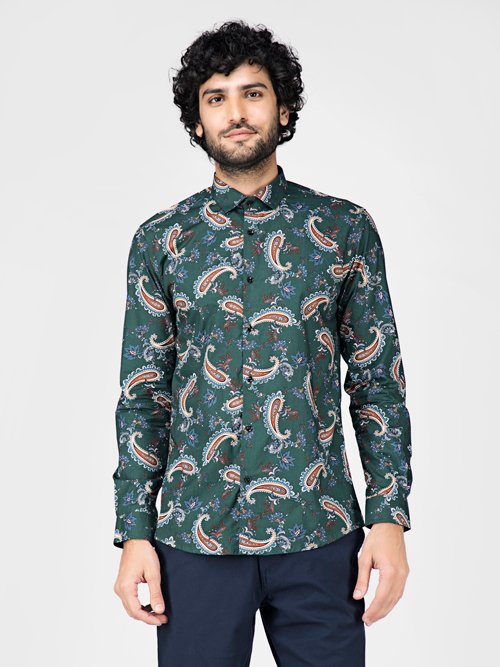 OLIVE PAISLEY PRINT CASUAL SHIRT WITH FULL SLEEVES.