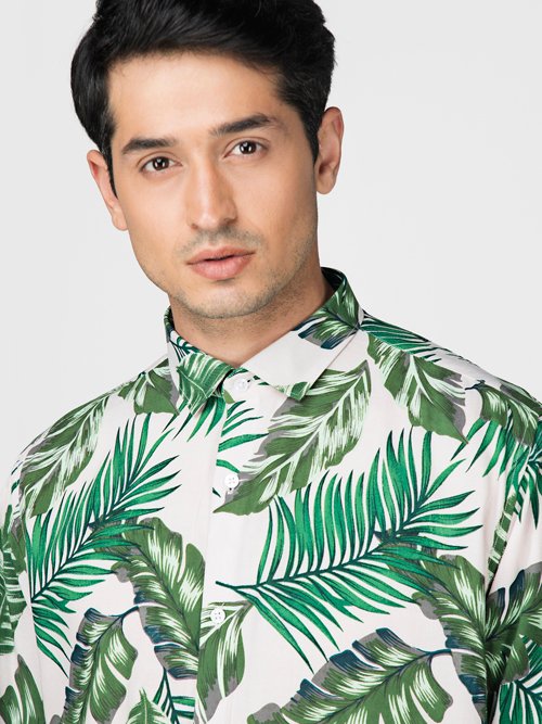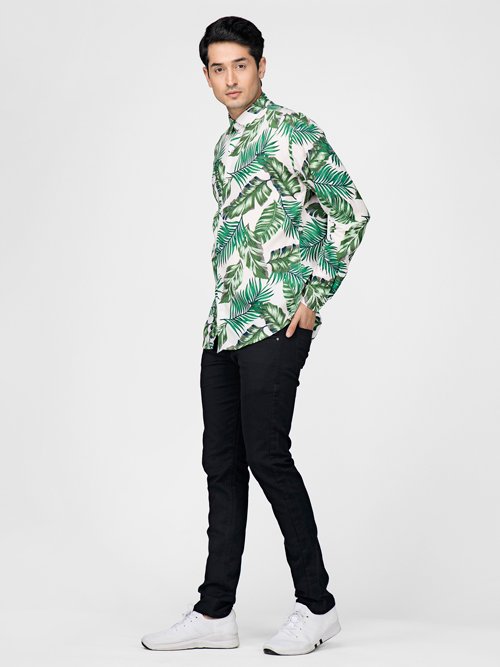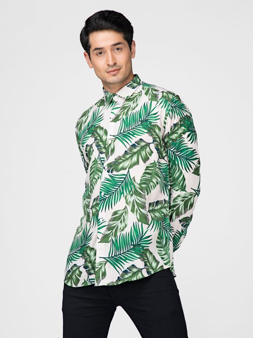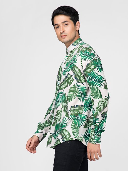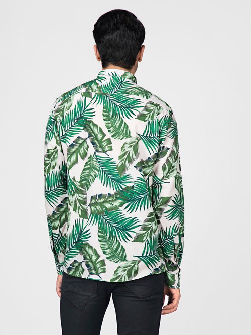 PINK TROPICAL PRINT CASUAL SHIRT WITH FULL SLEEVES.