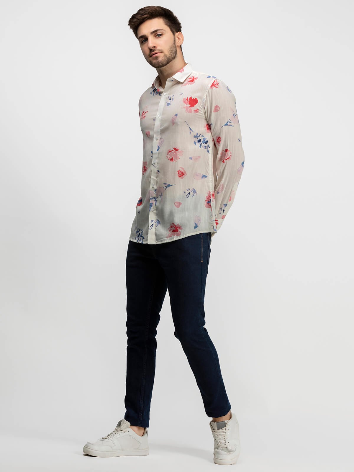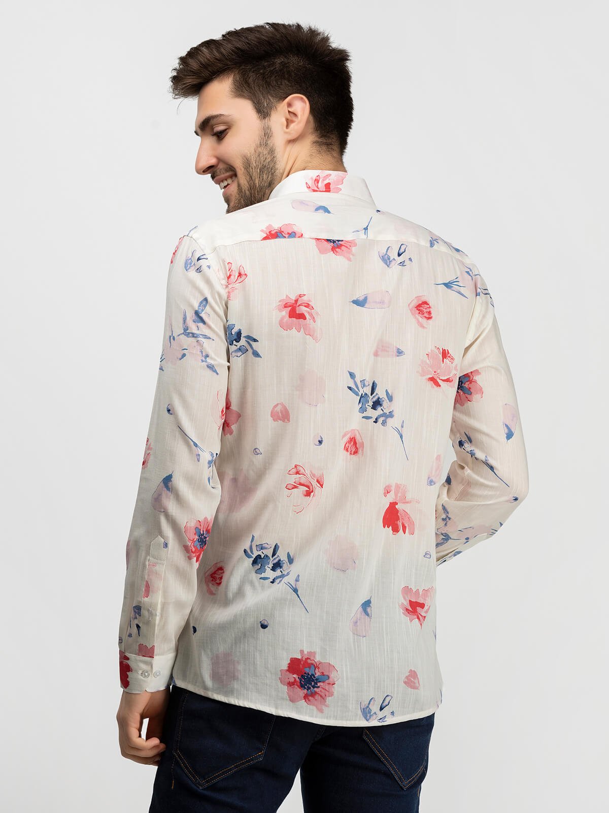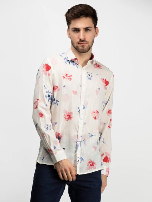 REGULAR FIT COLLARED SHIRT WITH FULL SLEEVES AND A BACK CUT COLLAR.
