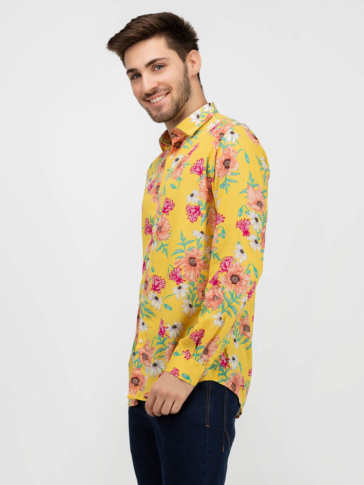 This Yellow Floral Shirt is from Green Hill is the perfect pick for this season.