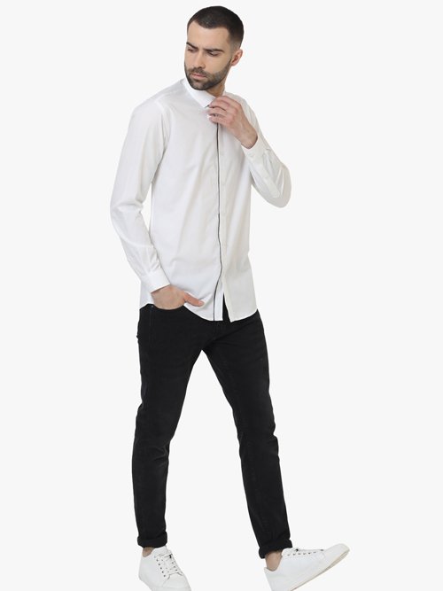 WHITE DETAIL SOLID casual shirt Has a button-down collar A full button placket A solid style Long sleeves with roll-up button tabs A curved hemline.