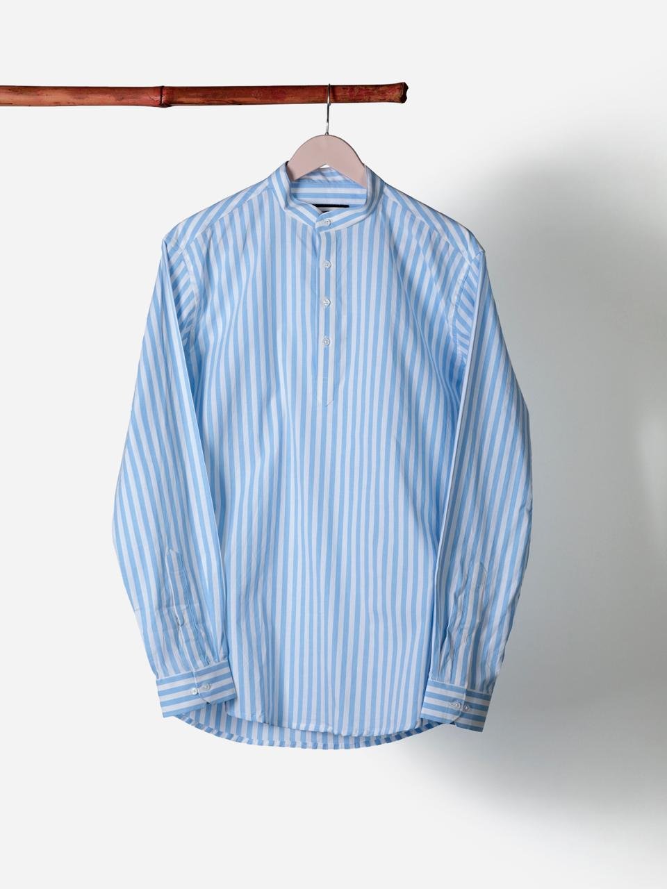 The Blue Stripe Kurta Shirt,full sleeves,chinese collar.