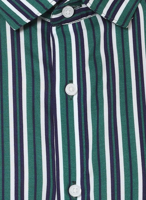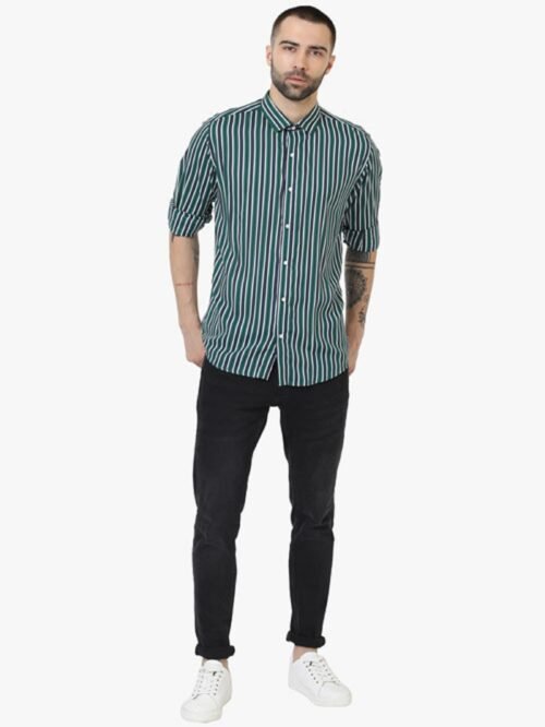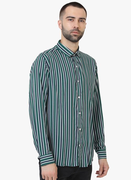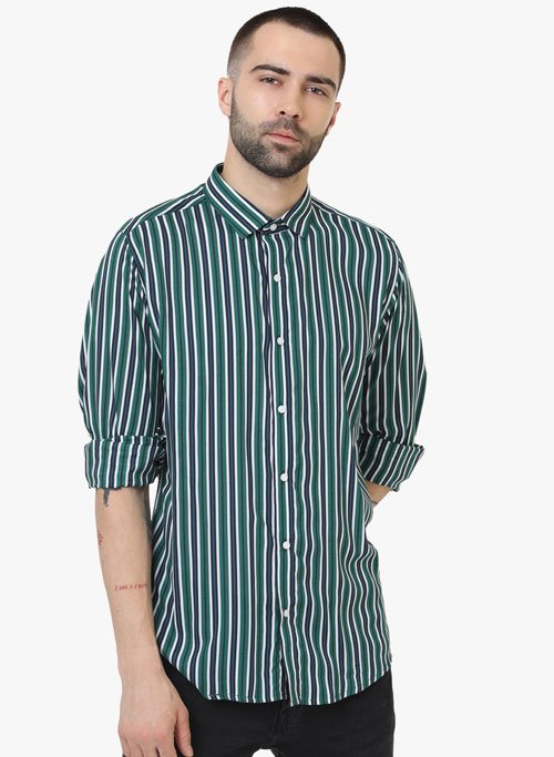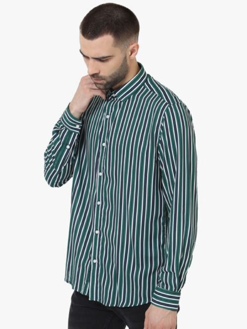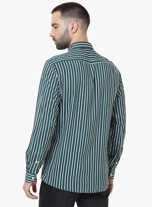 Green Stripe casual shirt,full sleeves with back cut collar.
