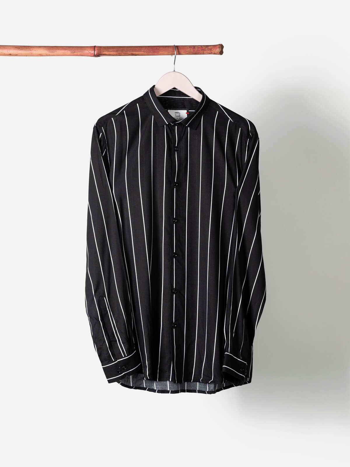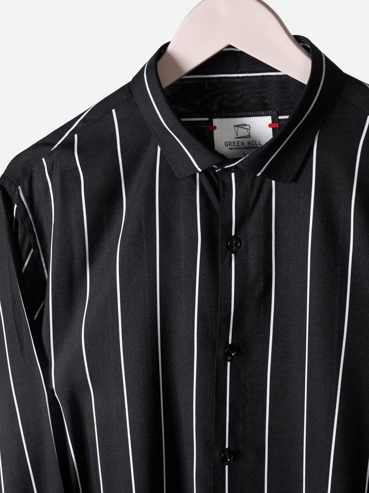 REGULAR FIT THIN STRIPED COLLARED SHIRT WITH FULL SLEEVES AND A BACK CUT COLLAR